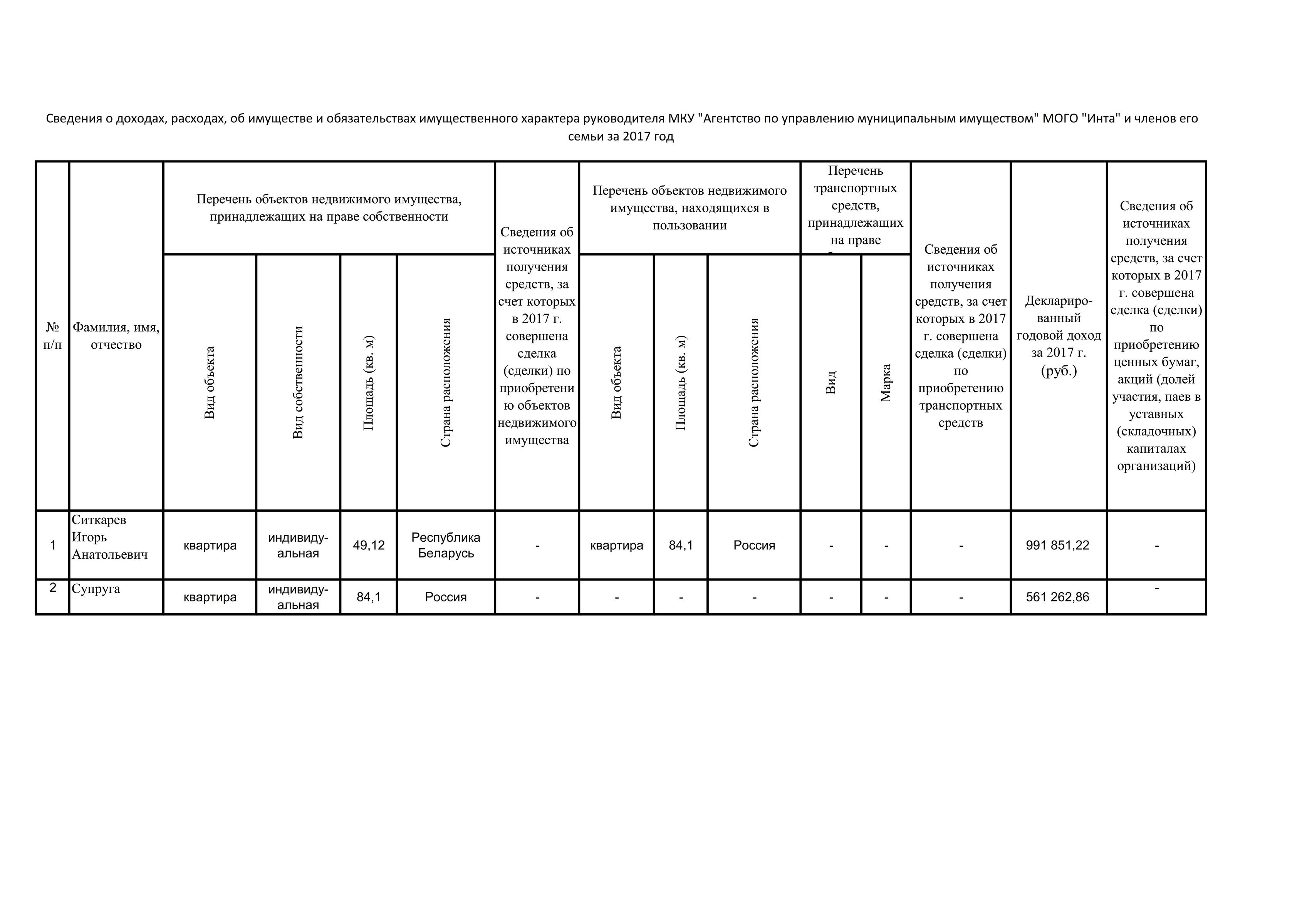 Сведения о доходах, об имуществе и обязательствах имущественного характера руководителя муниципального учреждения и членов его семьи за 2017 год