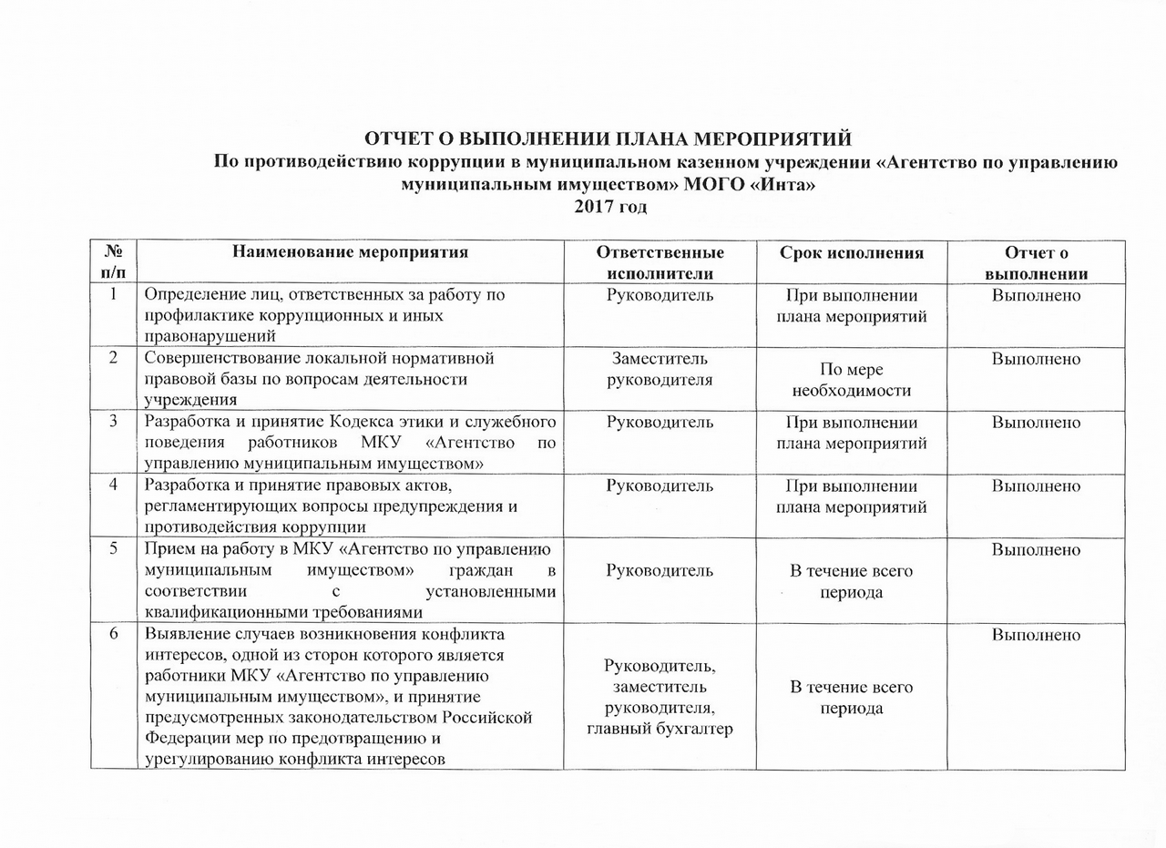 Отчет о выполнении плана мероприятий по противодействию коррупции за 2017 год