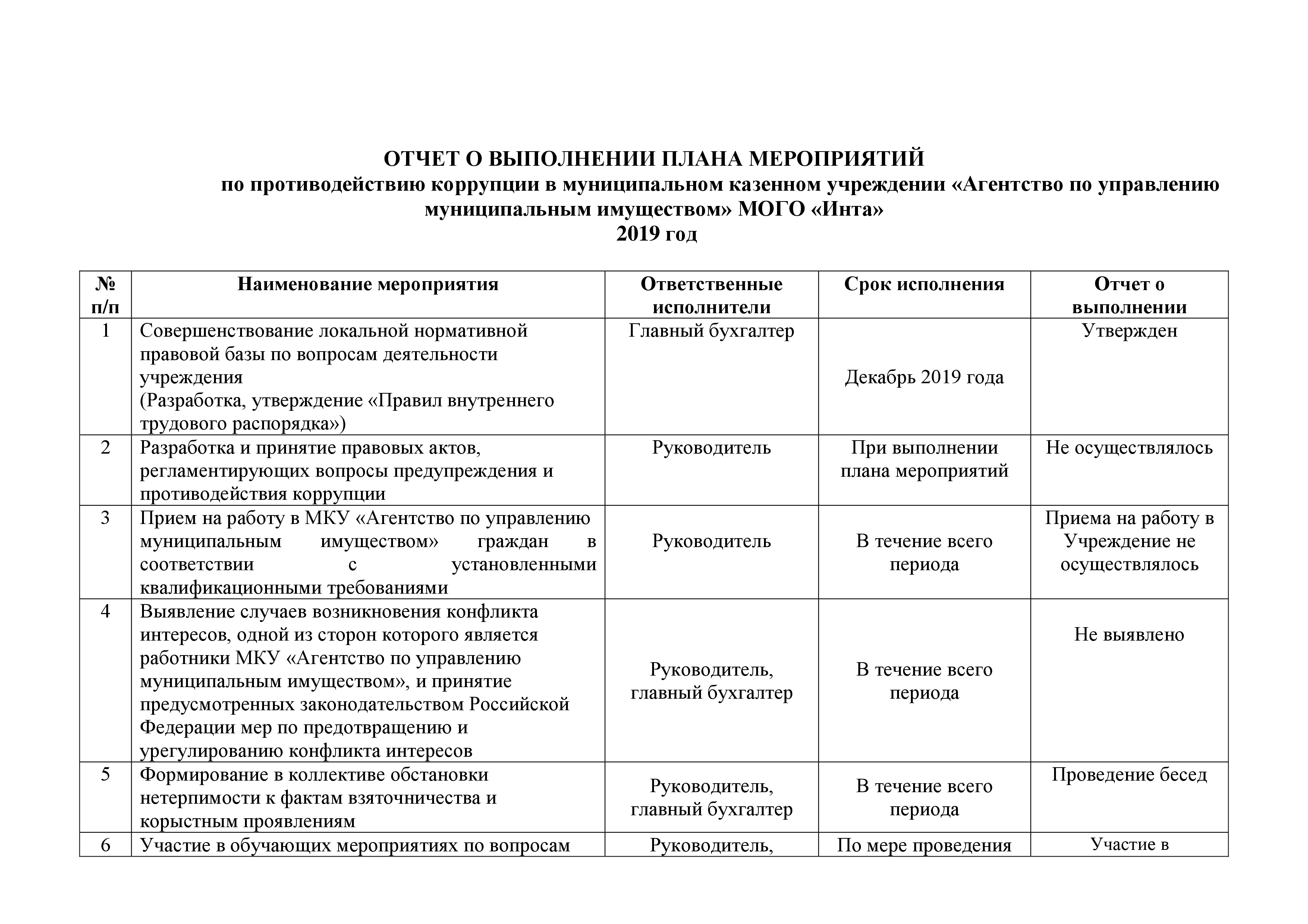 Отчет о выполнении плана мероприятий по противодействию коррупции за 2019 год